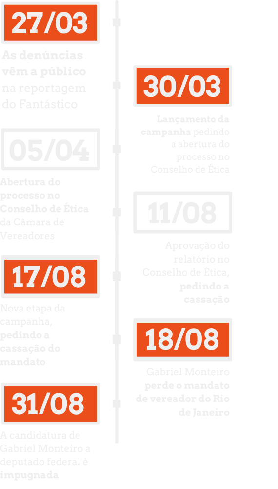 Conseguimos! O Rio de Janeiro não tem mais um vereador denunciado por assédio sexual e moral, agressões físicas e manipulação: o mandato de Gabriel Monteiro foi cassado e sua candidatura a deputado federal foi impugnada!